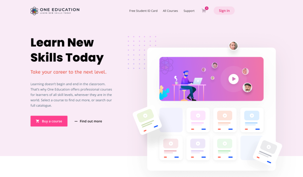 One Education is a global online learning platform offering professional courses for learners of all skill levels. Their mission is simple: “Learn New Skills Today. Take your career to the next level.”